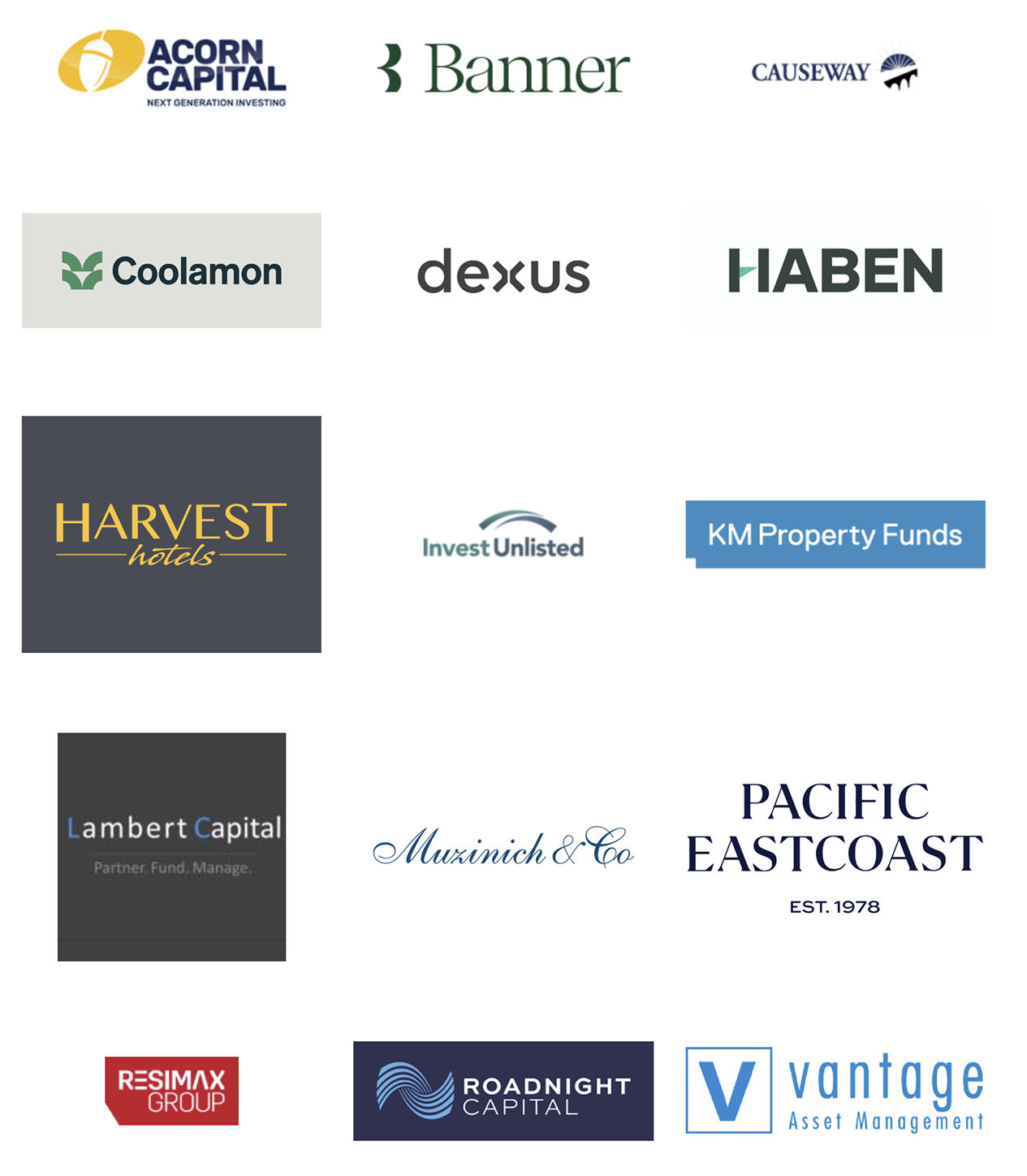 We have a proud and successful history dating back to 2003, and over the past 20 years we have built strong, proven relationships with leading Australian and international fund managers, real estate investment advisory groups and asset managers across property, debt, equity, and agriculture investment development funds. Our investment partners include:
